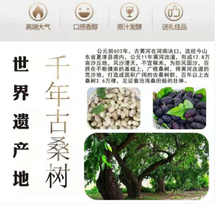 山东椹树下生物科技有限公司成立于2017年4月,是一家依托全球重要农业文化遗产地--山东夏津黄河故道桑树资源,集桑树培育和示范种植、桑椹和桑叶等深加工、椹果酒、椹叶茶等系列产品销售等为一体的创新技术型企业。夏津黄河故道桑树资源历经数次变迁,公元11年黄河改道后,沙丘连绵,不宜稼禾历史上劳动人民为防风固沙,广植桑树,桑树生命力极其旺盛,根系发达,逐渐形成了数万亩的古桑树群,“攀援20里如履平地”。 桑椹果被卫生部列为“既是食品又是药品”第一植物名单。山东椹树下生物科技有限公司拥有完整科学质量管理体系及研发团队,以品质赢市场,以诚信实力和产品质量获得业界认可。