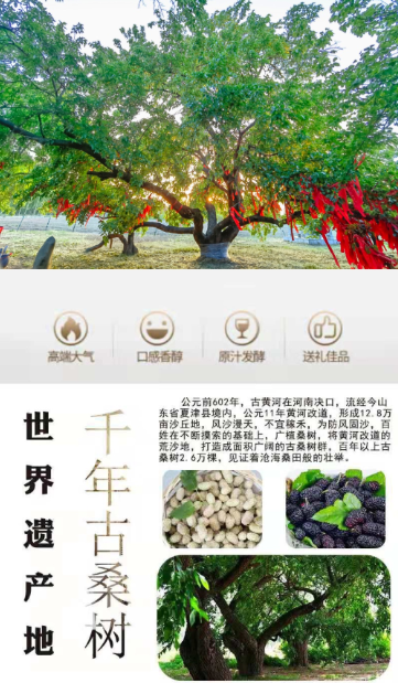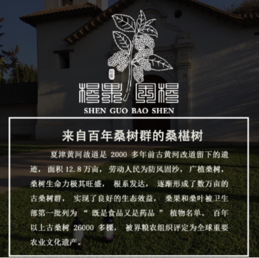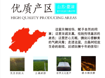 山东椹树下生物科技有限公司成立于2017年4月,是一家依托全球重要农业文化遗产地--山东夏津黄河故道桑树资源,集桑树培育和示范种植、桑椹和桑叶等深加工、椹果酒、椹叶茶等系列产品销售等为一体的创新技术型企业。夏津黄河故道桑树资源历经数次变迁,公元11年黄河改道后,沙丘连绵,不宜稼禾历史上劳动人民为防风固沙,广植桑树,桑树生命力极其旺盛,根系发达,逐渐形成了数万亩的古桑树群,“攀援20里如履平地”。桑椹果被卫生部列为“既是食品又是药品”第一植物名单。山东椹树下生物科技有限公司拥有完整科学质量管理体系及研发团队,以品质赢市场,以诚信实力和产品质量获得业界认可。