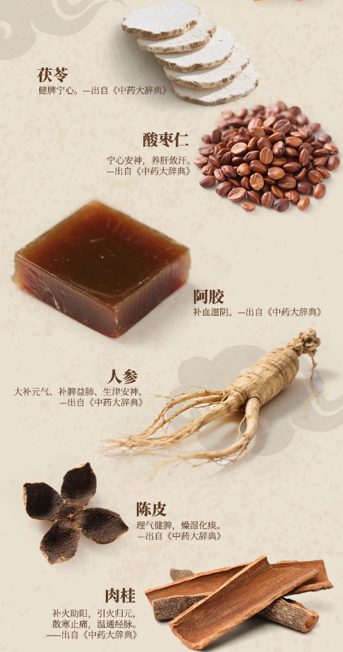 作用:心气血神同食养/温和滋养/助力深眠/针对思虑过重/夜梦繁多药食同源食养