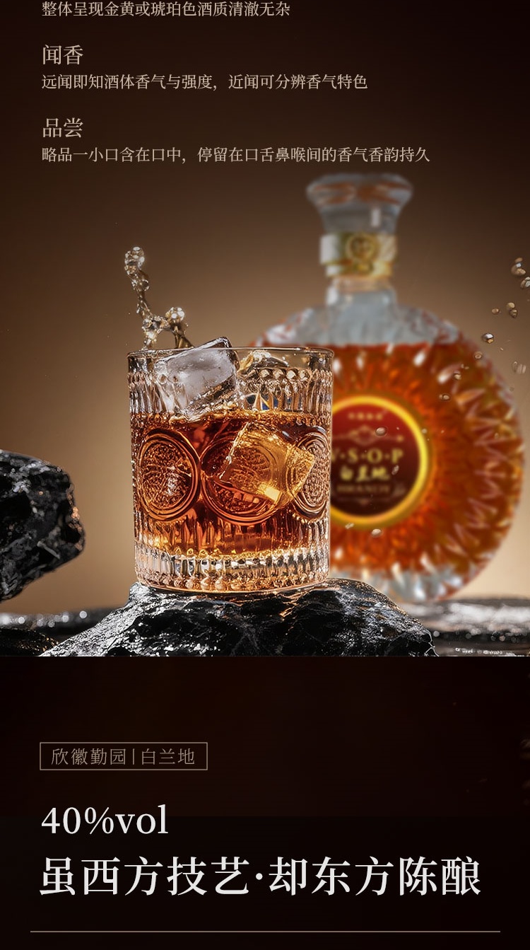 匠心工艺:传统蒸馏工艺与现代技术结合,确保每一瓶白兰地的品质与口感。