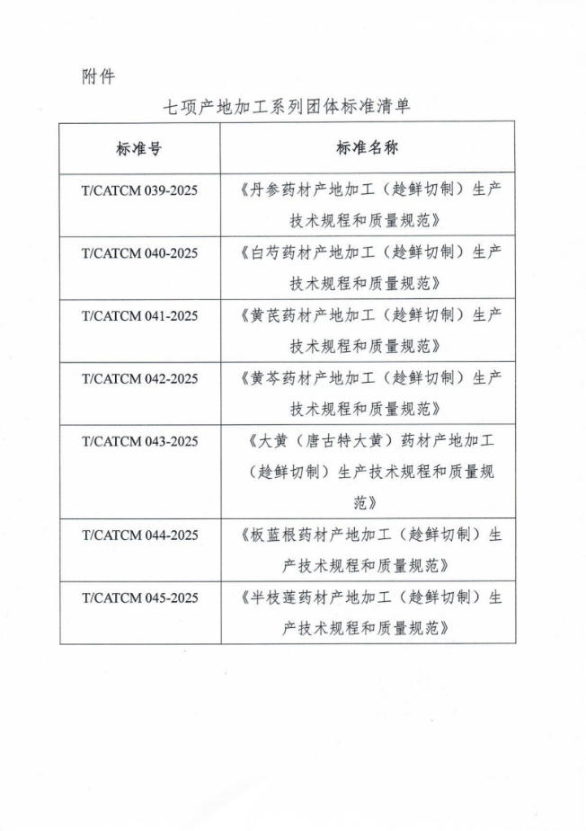 核心提示:中国中药协会发布七项产地加工系列团体标准。