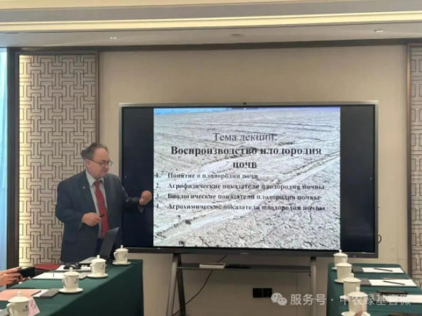技术交流环节中,中外专家展开深度学术研讨。马兹洛夫院士聚焦土壤生态系统修复,深入解析了微生物群落结构与土壤肥力的关联性,分享了其团队研发的“生物炭基改良技术”在提升耕地质量、减少化肥依赖方面的突破性成果,该技术已在东欧地区实现规模化应用,作物产量平均提升15%以上。夏迪院士则针对全球农业生态危机,系统阐述了水土流失治理、盐碱地改良与土壤腐殖质提升的协同技术体系,提出“水土资源动态监测+精准修复”的综合治理方案,其主导的中亚干旱区治理项目已使200万亩退化土地恢复农业生产力。两位专家的演讲内容兼具学术高度与实践价值,引发与会者热烈讨论。