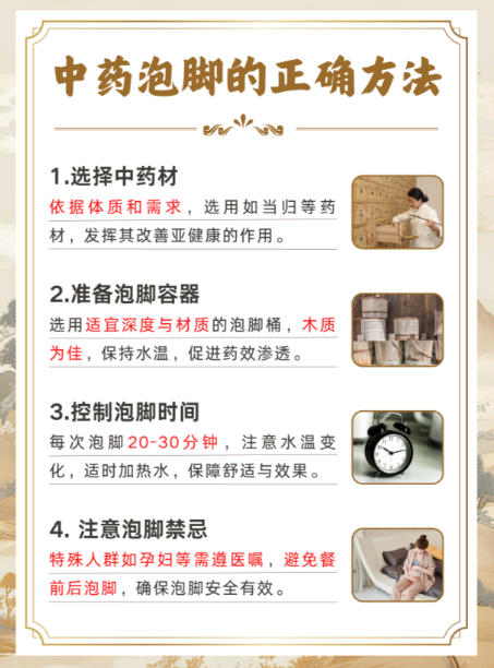 正确的泡脚做法应达到“身暖微潮”的温和效果,即泡到感觉全身温暖,背部或额头微微有汗意,但并未形成汗珠流下,为最佳状态。时间应严格控制在15~20分钟,水温保持在40℃左右,以人体感觉舒适为宜。以下几类人群泡脚时需要特别谨慎,甚至应避免。
