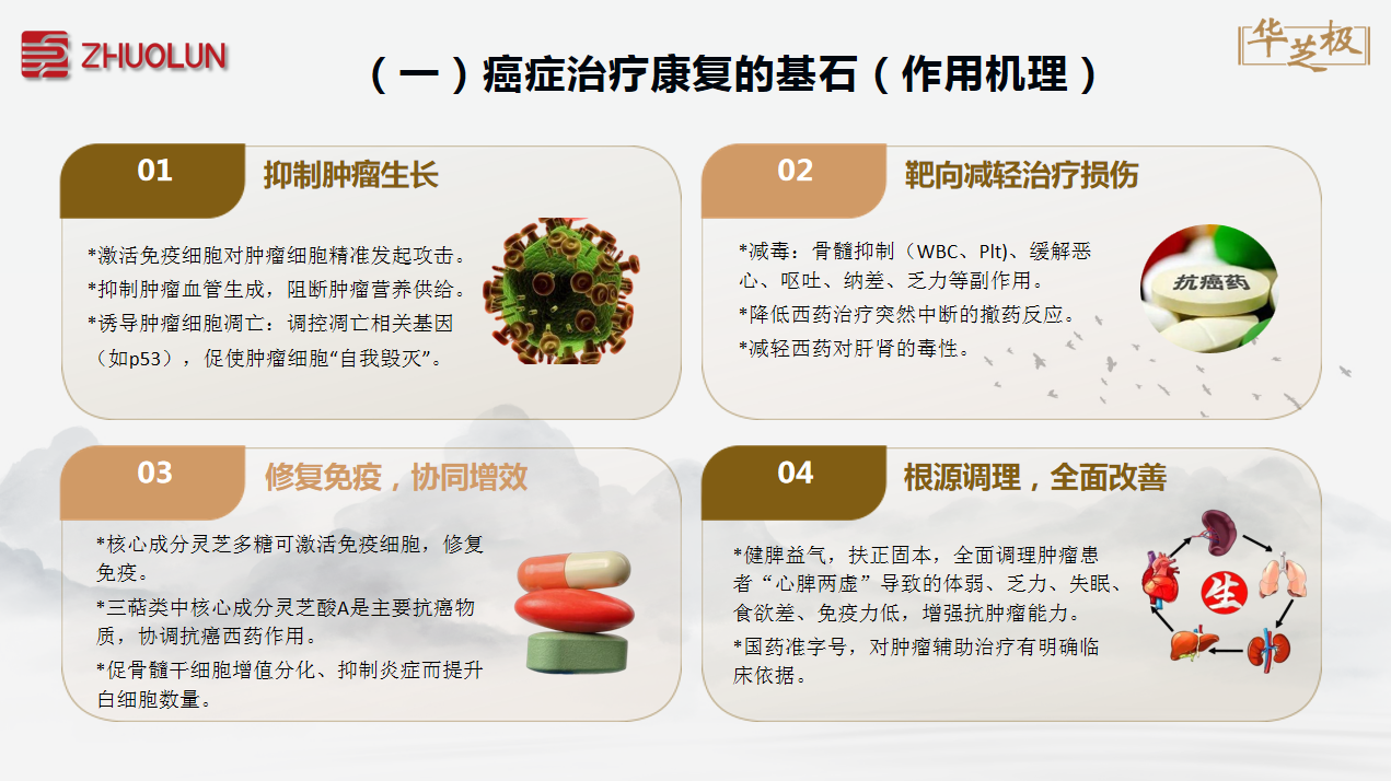 现代药理学研究正在逐步揭示灵芝传统功效背后的科学机理。其主要的生物活性成分包括: