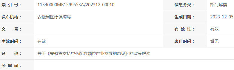 为贯彻落实省委、省政府关于中医药振兴发展决策部署,充分发挥中医药的独特优势,更好地满足人民群众就医需求,支持中药配方颗粒产业高质量发展,推动安徽中医药产业提质扩量增效,省医保局会同省卫生健康委、省经济和信息化厅、省药监局等单位成立联合调研组,在系统梳理现有政策文件、学习借鉴外省经验做法、广泛征求意见建议的基础上,报省政府同意,制定出台《安徽省支持中药配方颗粒产业发展的意见》。