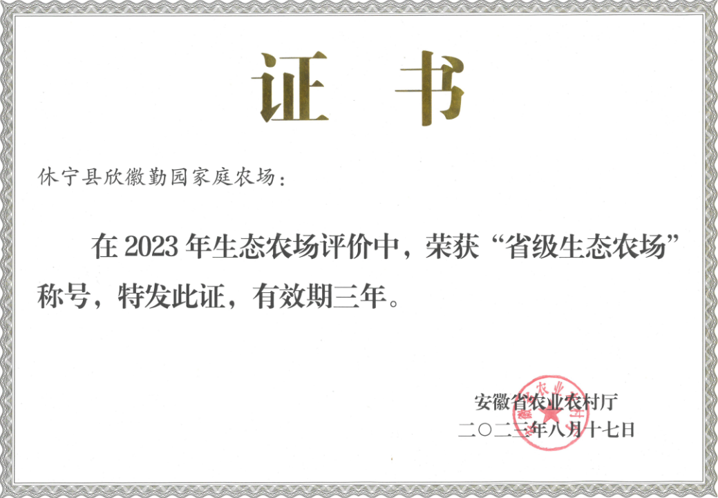 黄山市欣徽勤园农业发展有限公司成立于2021年7月,前身是2014年11月成立的休宁县欣徽勤园家庭农场。公司主营农产品深加工研发与销售;种植技术推广;农业技术服务等。旗下种植农场位于安徽省黄山市休屯盆地中部河谷,地处北纬29°45'44",东经118°14’8”,拥有得天独厚的自然条件。农场占地面积100.1亩,种植了12个葡萄品种,凭借优越的地理环境和科学的种植管理,先后被评为“安徽省省级示范家庭农场”“安徽省省级生态示范农场”,并成为安徽省水果协会理事单位和安徽省园艺学会会员单位。